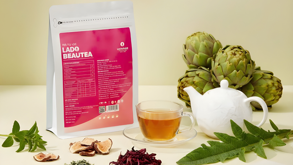 Sau thời gian dài nghiên cứu, các chuyên gia của Ladophar đã tinh chọn 4 thành phần dược liệu quý gồm Atiso, Đương quy, Bụp giấm và Cỏ ngọt – mỗi loại mang trong mình một công dụng đặc biệt, cùng nhau tạo nên công thức “trà làm đẹp da” độc đáo: